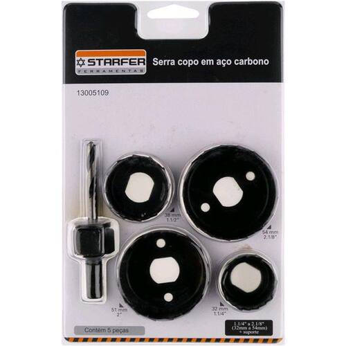 Jogo Serra Copo Em Aço Carbono Starfer C/ 5 Peças com dentes super afiados.