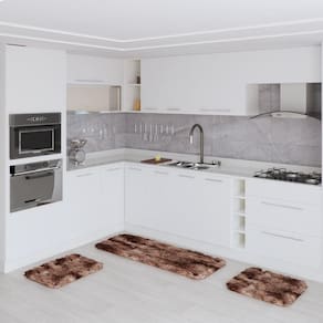 Jogo Kit Tapete Cozinha Ant Derrapante 3 Uni Mesclado Marrom