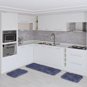 Jogo Kit Tapete Cozinha Anti Derrapante 3 Uni Cinza
