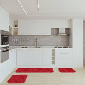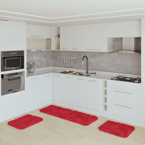 Jogo Kit Tapete Cozinha Anti Derrapante 3 Uni Vermelho