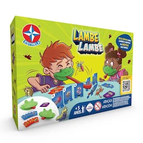 Jogo Lambe Lambe - Brinquedos Estrela Um jogo de ação em que você ganha com muita agilidade. Enfilere as cartas com os insetos, e se posicione à frente delas. Embaralhe as cartas do monte, e revele a carta do topo e, com a língua de sogra, tente derrubar a carta correspondente antes de seu oponente. Seja o mais rápido a derrubar os insetos com a língua do sapo, acumule mais insetos e ganhe o jogo! Idade Recomendada: A partir de 6 anos | Material: plástico | Quantidade de Peças: 02 máscaras de sapo, 02 elásticos, 04 línguas de sogra de plástico, 10 cartas de jogo com abertura inferior, 10 cartas de monte, 01 saco zip | Código Inmetro: 012 346 / 2023 | FORMAT: Físico | Nome do jogo de tabuleiro: Jogo Lambe Lambe - Brinquedos Estrela Ean: 7896027562026