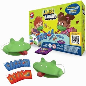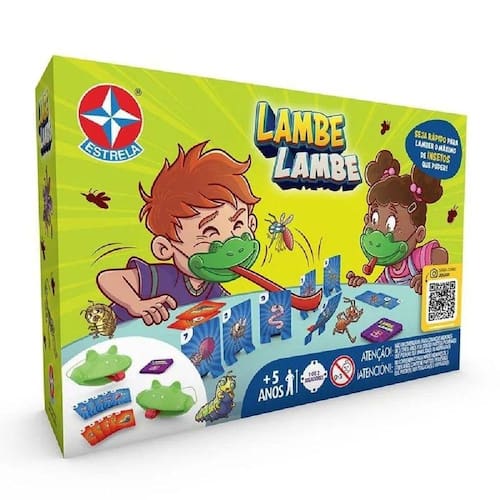 O Jogo Lambe Lambe da Estrela é a opção ideal para reunir a família e amigos em momentos de descontração e diversão. Um jogo de ação em que você ganha com muita agilidade. Enfileire as cartas com os insetos, e se posicione à frente delas. Embaralhe as cartas do monte, e revele a carta do topo e, com a língua de sogra, tente derrubar a carta correspondente antes de seu oponente. Seja o mais rápido a derrubar os insetos com a língua do sapo, acumule mais insetos e ganhe o jogo! Idade recomendada: A partir de 5 anos. Selo Inmetro: 012 346/2023.