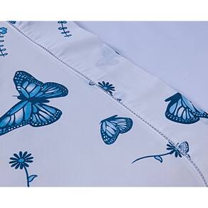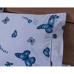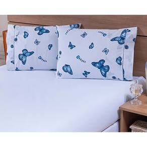 Jogo Lençol 4 Peças Cama Viúva 1,88mx1,28mx25cm 100% Algodão 180 Fios Borboletas Azul