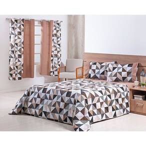 Jogo Lençol 4 Peças Cama Viúva 1,88mx1,28mx25cm 100% Algodão 180 Fios Geométrico Cáqui