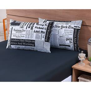 Jogo Lençol 4 Peças Cama Viúva 1,88mx1,28mx25cm 100% Algodão 180 Fios Jornal Preto