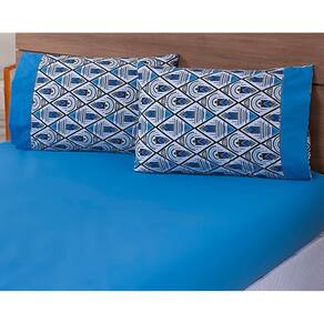 Jogo Lençol 4 Peças Cama Viúva 1,88mx1,28mx30cm 100% Algodão 180 Fios Losangos Azul