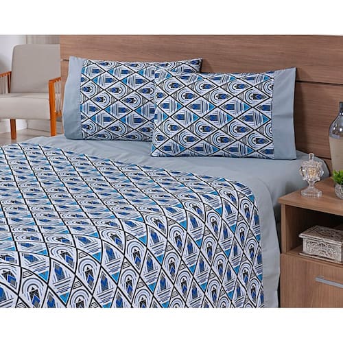 01 Lençol de Cima Estampado 2,60m x 1,90m01 Lençol de baixo com elástico ao redor de todo o lençol para melhor fixação no colchão(não fica saindo da cama)Para  colchão 1,88m X 1,28m X 30cm 02 Fronhas 70cm x 50cmComposição: Tecido 100% Algodão 180 FIOS