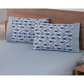 Jogo Lençol 4 Peças Cama Viúva 1,88mx1,28mx30cm 100% Algodão 180 Fios Losangos Cinza