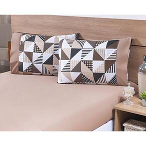 Jogo lençol 4 peças cama viúva 2,03mx1,20mx30cm 100% algodão 180 fios ponto palito geométrico cáqui Thais enxovais Jogo de lençol 4 peças cama 2,03x 1,20 x 0,30 cama viúva 100% algodão 180 fios com ponto palito