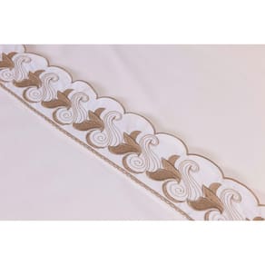 Jogo lençol 4 peças cama viúva percal 200 fios bordado palha com caqui Thais enxovais