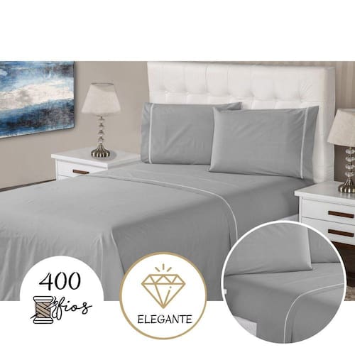 Jogo Lençol 4 Peças Casal 400 Fios Ponto Palito Casa Dona - Prata