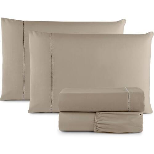 JOGO DE LENÇOL CAMA VIUVA 4 PEÇAS MICRO PERCAL 400 FIOS Contém: 01 Lençol de cima 2,60m X 1,90m 01 Lençol de baixo com elástico em toda a volta para melhor fixação no colchão Para colchão 2,03m X 1,20m X 30cm 02 Fronhas 50x70 Composição: Tecido Micro Percal 100% Poliéster 400 Fios Marca: Não Informado