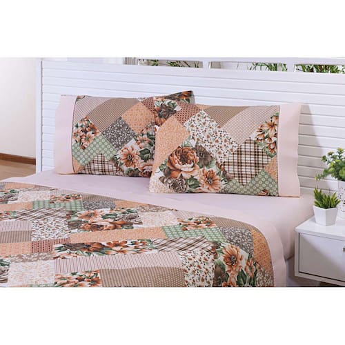 Jogo lençol 4 peças cama viúva percal 150 fios estampa patchwork