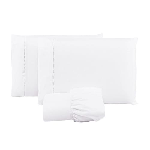 Jogo Lençol 400 Fios Ponto Palito Cama King 3pçs Poliéster - Branco