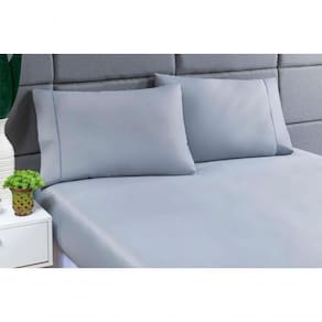 Jogo Lençol 400 Fios Ponto Palito Cama King 3pçs Poliéster - Cinza