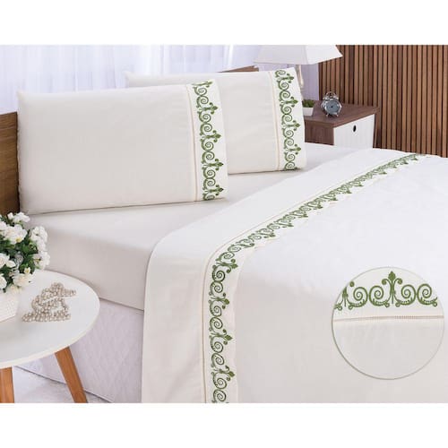 Produzido com tecido de alta qualidade sendo Percal 200 Fios no Tecido 100% Algodão com delicado Bordado nas peças transmitindo a sensação de conforto e proporciona proteção ao colchão fazendo da sua cama o melhor lugar para carregar as energias pois dormir é extremamente importante em nossa vida. Fazendo de sua casa um verdadeiro lar !