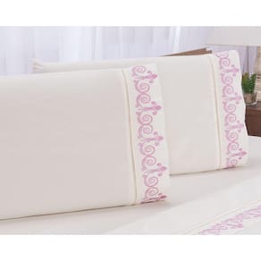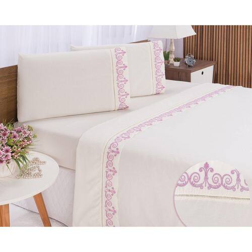 Jogo lençol Atenas quarto casal Queen bordado 4 peças 2fronha - Rosê