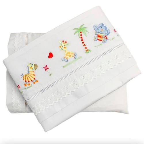 Jogo de Lençol para Berço 3 Peças Ponto Palito com Bordado Inglês - Baby Zoo Colorido Lençol de berço 3 peças Ponto Palito com Bordado Inglês e detalhe em delicado bordado da coleção Baby Zoo Colorido. Lençol superior, lençol inferior e fronha em percal 100% algodão. Toque suave e macio, sendo o lençol de baixo com elástico, proporcionando facilidade na colocação no colchão.