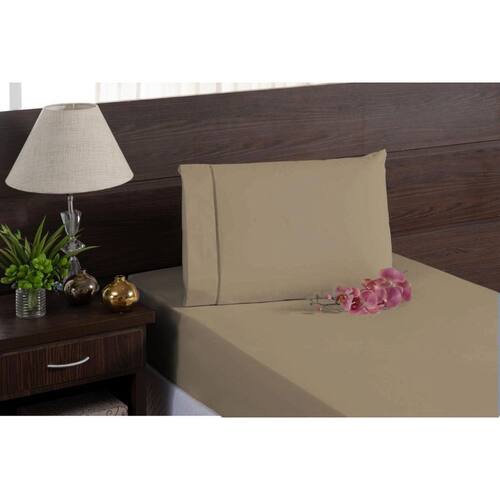 Jogo Lençol Cama Solteiro Ponto Palito 400 Fios Marrom Claro