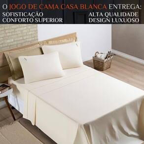 O Jogo de Lençol Casa Blanca é pensado para facilitar sua vida Com elástico no lençol de baixo, ele se ajusta perfeitamente ao colchão, enquanto as fronhas complementam o conjunto com delicadeza. Feito para ser durável e resistente, o jogo de lençol pode ser lavado na máquina, mantendo a qualidade e a suavidade do tecido, além de ser uma opção prática para o dia a dia.