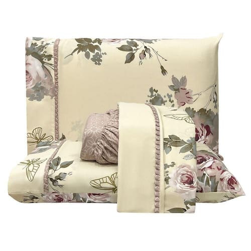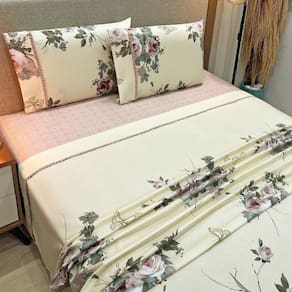 O Jogo de lençol para cama Casal Padrão com 04 peças confeccionado em tecido Percal 300 fios em estampas florais suaves e delicadas. Possui alto padrão de qualidade, proporciona conforto e sofisticação.