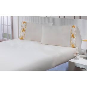 Jogo lençol casal viúva 1,88mx1,28mx30cm 3 peças 200 fios 100% algodão barrado bordado tulipa dourada Thais enxovais Jogo de lençol casal viúva 3 peças 100% algodão 200 fios com barrado bordado richilieu