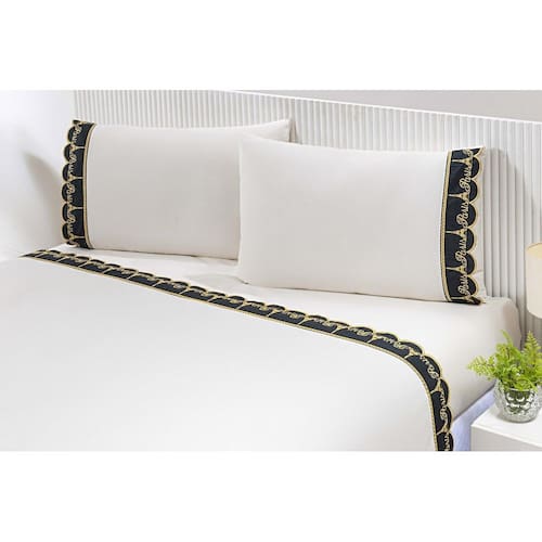 Jogo lençol casal viúva 2,03mx1,20mx40cm 4 peças 180 fios 100% algodão barrado bordado paris dourado Jogo de lençol casal viúva 4 peças 100% algodão 180 fios com barrado bordado richilieu