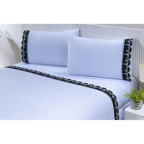 Jogo lençol casal viúva 2,03mx1,20mx40cm 4 peças 180 fios 100% algodão barrado bordado paris preto