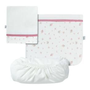 O Jogo de Lençol 3 peças Hug traz conforto e cuidado para o quartinho do bebê. O kit possui um lençol de elástico, uma fronha e um sobre lençol com vira em suedine estampado. Além disso, o sobre lençol é ótimo para cobrir o bebê. Indicado para berço padrão americano.