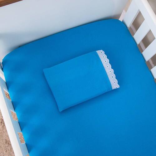 Jogo Lençol E Fronha Berço Americano 2 Peças Azul Céu