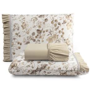 Jogo Cama Lençol Fiore Casal Padrão Estampado 180 Fios 100% Algodão com Babadinho 3 Peças Bege Floral Deixe o visual do seu quarto com o Jogo de Lençol Fiore, confeccionado em Percal 180 fios 100% algodão, que proporciona toque suave, frescor e respirabilidade durante o sono. Suas estampas florais encantadoras e os delicados babadinhos trazem um toque romântico e elegante à decoração. O lençol de baixo com elástico ajustável garante praticidade e um caimento perfeito ao colchão.