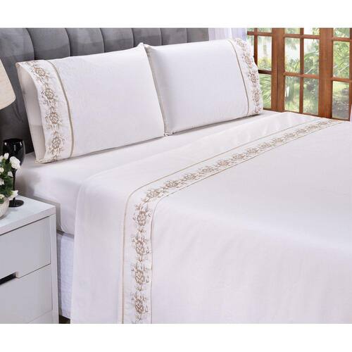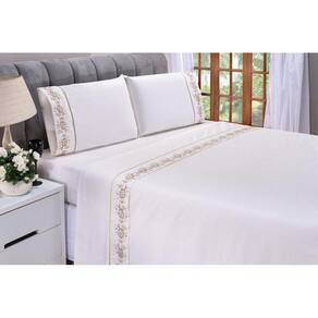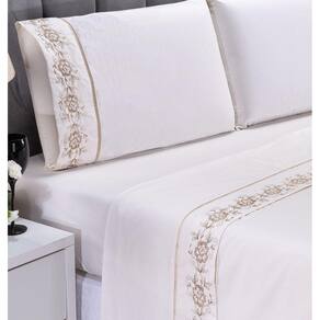 Jogo lençol Floral quarto casal padrão bordado 4 peças 2fronha - Cáqui