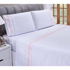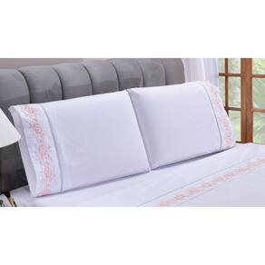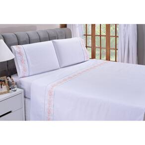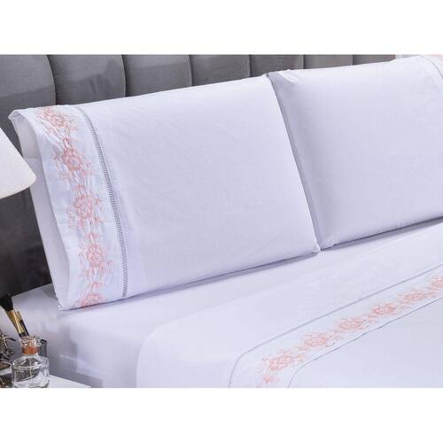 Jogo lençol Floral quarto casal Queen bordado 4 peças 2fronha - Salmão