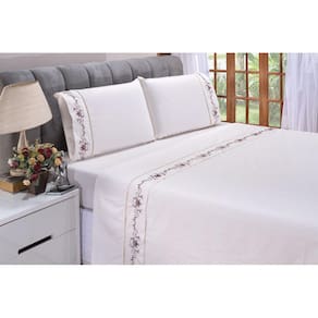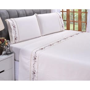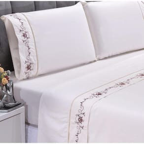 Jogo lençol Fluence quarto casal Queen bordado 4 peças 2fronha - Palha
