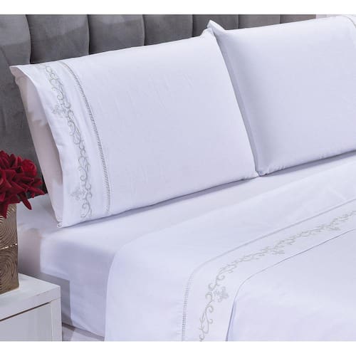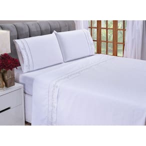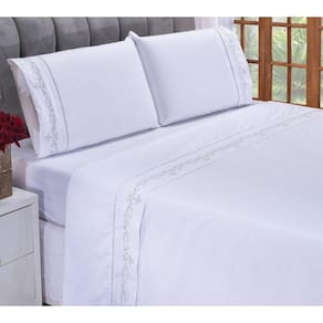 Jogo lençol Imperial quarto casal Queen bordado 4 peças 2fronha - Branco