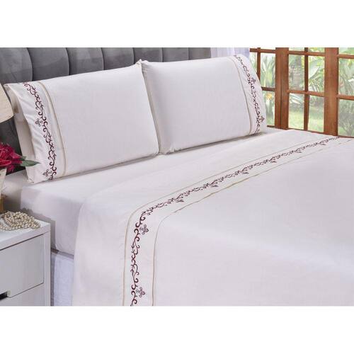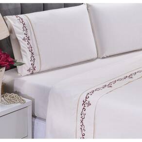 Jogo lençol Imperial quarto casal Queen bordado 4 peças 2fronha - Vinho