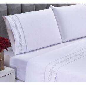 Produzido com tecido de alta qualidade sendo Percal 200 Fios no Tecido 100% Algodão com delicado Bordado nas peças transmitindo a sensação de conforto e proporciona proteção ao colchão fazendo da sua cama o melhor lugar para carregar as energias pois dormir é extremamente importante em nossa vida. Fazendo de sua casa um verdadeiro lar !