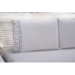 Jogo lençol king bordado 3 peças cinza tulipa quarto casal