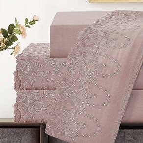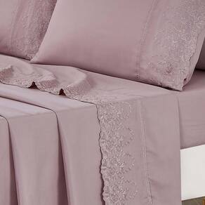 O Jogo de lençol para cama King com 04 peças confeccionado em tecido Percal 300 fios, detalhes em bordado inglês na fronha e no lençol de cima. Possui alto padrão de qualidade, proporciona conforto e sofisticação.