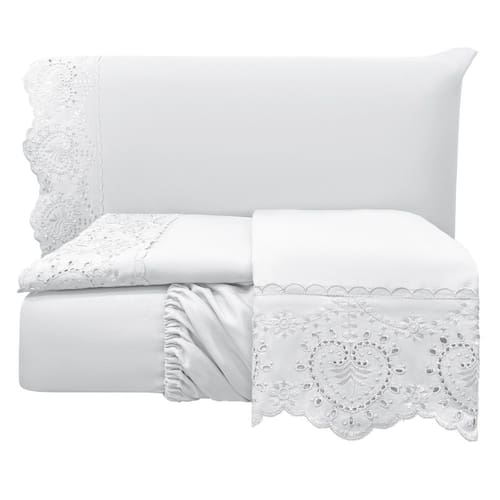 Jogo Lençol King Passione Bordado Inglês 4 pç Branco