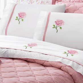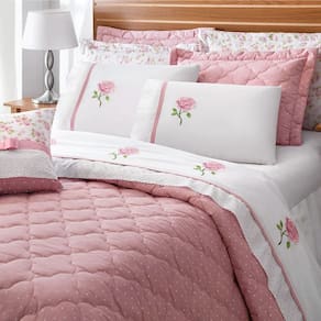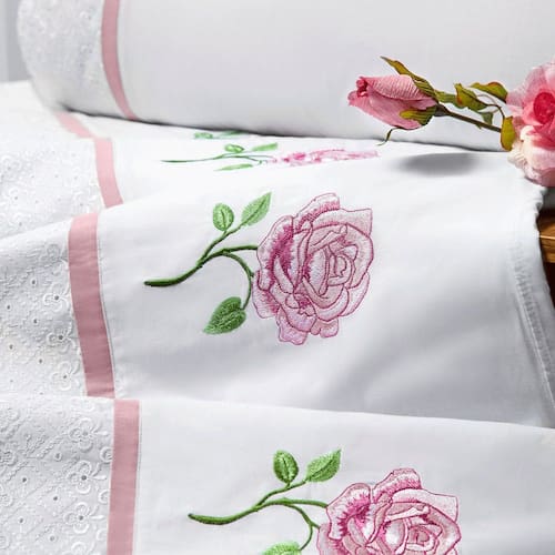 O Jogo de lençol em Percal 4 peças com detalhe Bordado na vira e na fronha. Acabamento em bordado inglês com alto padrão de qualidade, proporciona conforto e sofisticação.