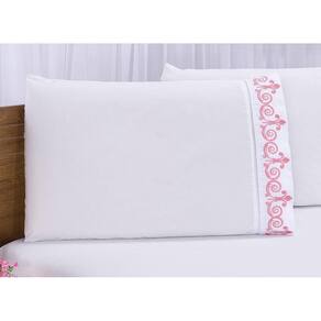 Jogo lençol quarto casal king bordado 3 peças branco rose