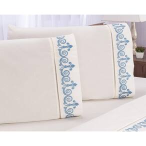 JOGO DE LENÇOL CASAL KING BORDADO 3 PEÇAS
