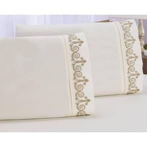 JOGO DE LENÇOL CASAL QUEEN BORDADO 3 PEÇAS