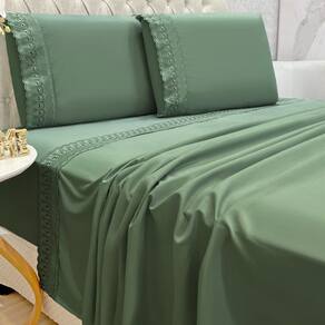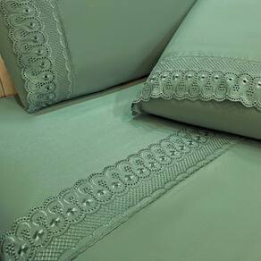 O Jogo de lençol para cama Queen com 04 peças confeccionado em tecido Percal 300 fios, detalhes bordado na fronha e no lençol de cima. Possui alto padrão de qualidade, proporciona conforto e sofisticação.