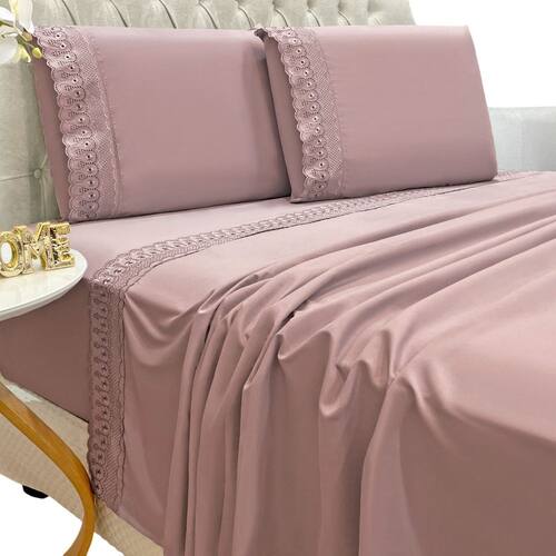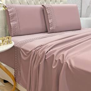 O Jogo de lençol para cama Queen com 04 peças confeccionado em tecido Percal 300 fios, detalhes bordado na fronha e no lençol de cima. Possui alto padrão de qualidade, proporciona conforto e sofisticação.