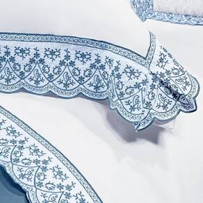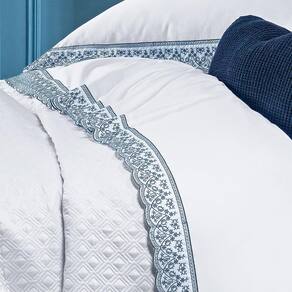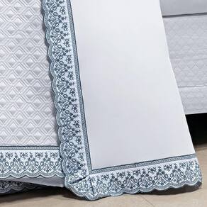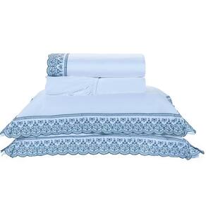 Jogo De Lençol Queen Lácio 4Pçs 400 Fios 100% Algodão Egípcio Branco/Azul