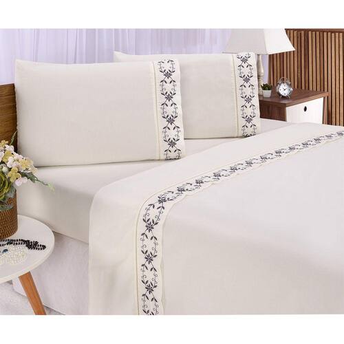 Produzido com tecido de alta qualidade sendo Percal 200 Fios no Tecido 100% Algodão com delicado Bordado nas peças transmitindo a sensação de conforto e proporciona proteção ao colchão fazendo da sua cama o melhor lugar para carregar as energias pois dormir é extremamente importante em nossa vida. Fazendo de sua casa um verdadeiro lar !