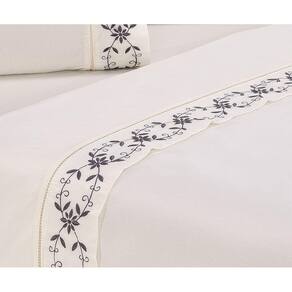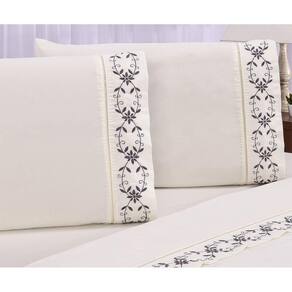 Jogo lençol Veneza quarto casal Padrão bordado 4 peças 2fronha - Grafite
