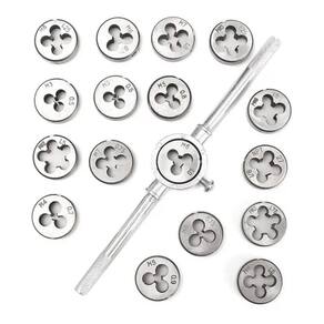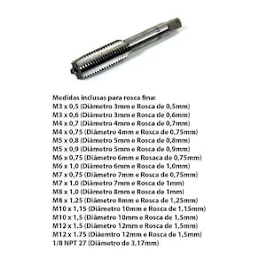-17 tarrachas: m3x0.5, m3x0.6, m4x0.7, m4x0.75, m5x0.8, m5x0.9, m6x0.75, m6x1.0, m7x0.75, m7x1.0, m8x1.0, m8x1.25, m10x1.25, m10x1.5, m12x1.5, m12x1.75mm, 1/8 npt 27.